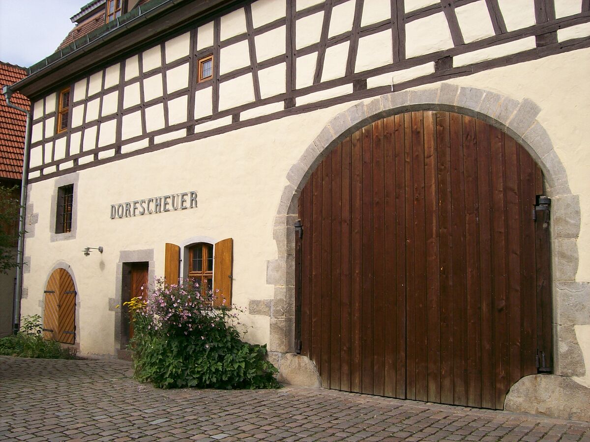 Ehemalige Zehntscheune und jüdische Synagoge, ab den 1950er Jahren als "Haus der Bäuerin" genutzt. 1990 wurde das Gebäude von der Gemeinde renoviert und in die Dorfscheuer umgewandelt.
